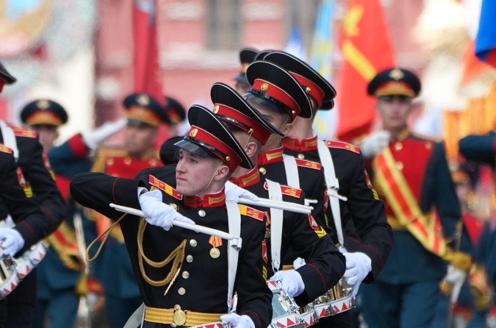2025年5月9日,在俄罗斯首都莫斯科,军乐队参加纪念苏联伟大卫国战争胜利80周年阅兵式。新华社记者 赖向东 摄\n\t大国之间和睦才能世界和平,大国相互合作才有全球发展。
